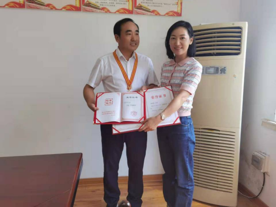 安陸市委常委、宣傳部長王甜為身邊好人“荊楚楷?!编u寬橋頒發(fā)證書