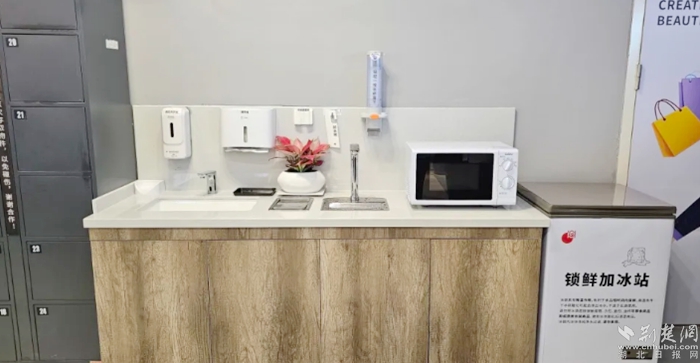 新增智能洗手臺、直飲水站、擦手紙、手機(jī)放置架、微波爐、取冰臺等細(xì)節(jié)盡顯貼心。服務(wù)臺、收銀臺增設(shè)筷子、勺子、吸管、手套等免費(fèi)服務(wù)便民用具,全方位滿足顧客需求。