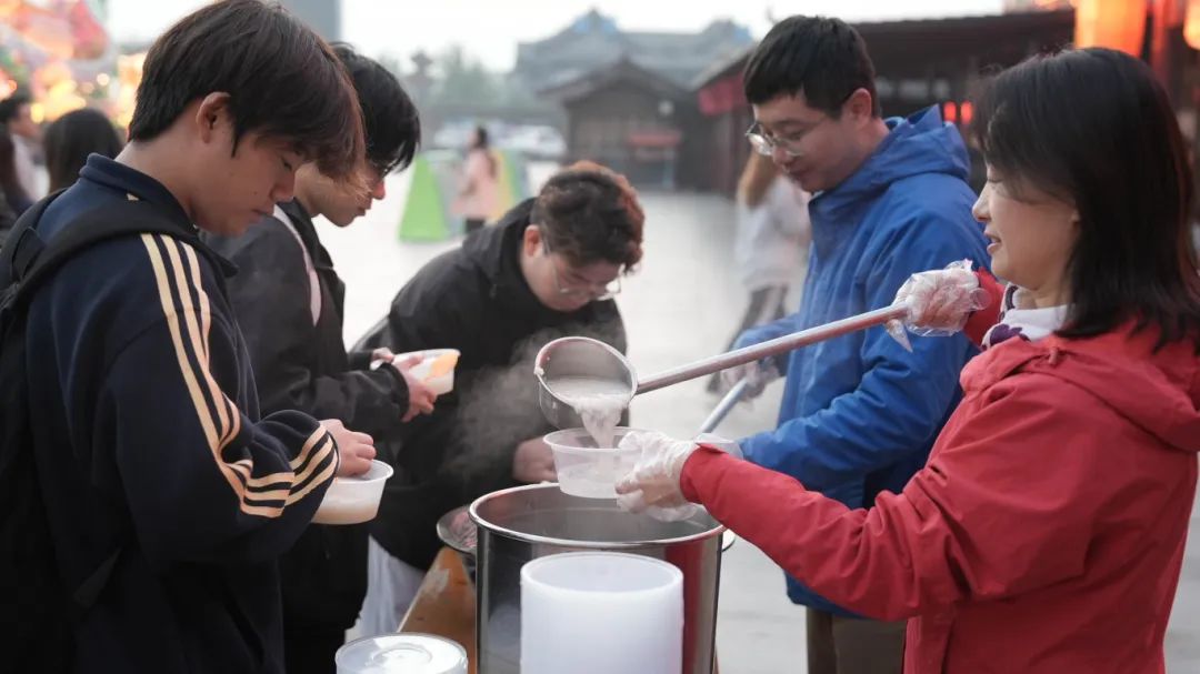 清明上河園迎賓門(mén)游客中心及園內(nèi)多個(gè)場(chǎng)所暖氣、熱水、休息區(qū)24小時(shí)開(kāi)放供應(yīng),并在早晨提供免費(fèi)宵夜、免費(fèi)早餐,希望能夠在漸冷的深夜給予你們一些溫暖!