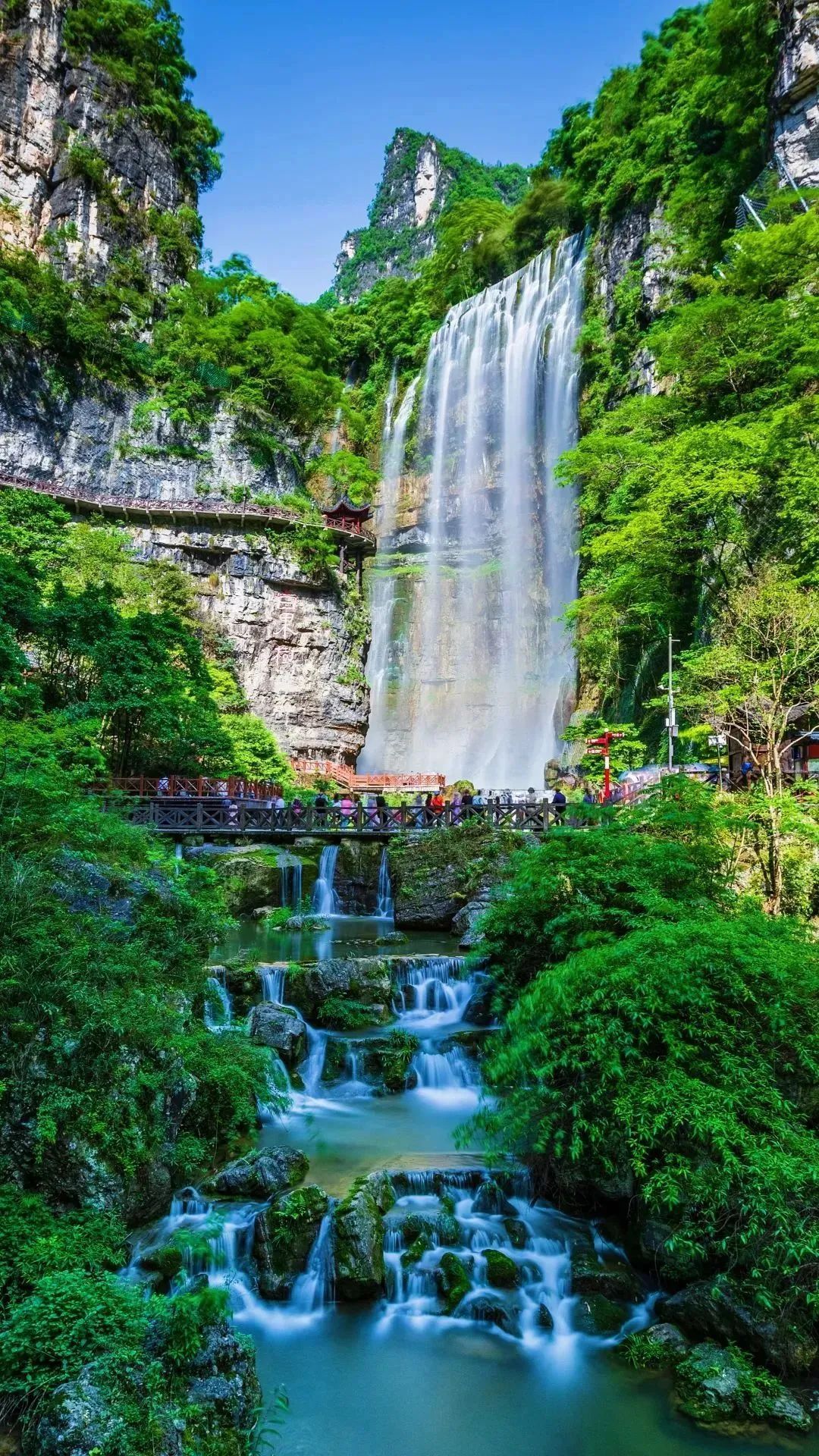 The Three Gorges Waterfall ranks among “China's Top Ten Famous Waterfalls.” It extends for five kilometers, dotted with over 30 waterfalls that showcase spectacular and varying forms, making it a feast for the eyes.