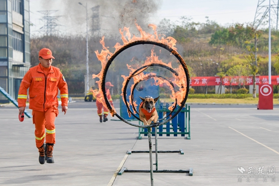 樓層綜合滅火演練前,現(xiàn)場先后開展了搜救犬綜合搜救操、繩索救援上升與下降操、綜合滅火救人操等科目。尤其是搜救犬互動表演,讓人驚嘆不已。“有幸參加這次活動,還能‘?dāng)]’到搜救犬,近距離觀看到它們?nèi)绾斡?xùn)練、搜救,我很激動?!焙睅煼洞髮W(xué)文理學(xué)院消防志愿者王晨睿說。