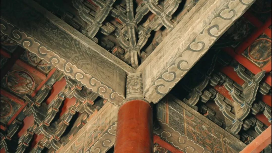 A Dougong is a complex bracket set that extends outside to allow a wide eave or porch and connects the roof and pillar, bearing the load of upper structure, and transferring it to the lower columns. The structure of Dougong bracket sets in the Zixiao Palace is the essence of its architectural art. The upper eaves feature 56 sets of Dougong brackets with three projections on a single -eave and double-ridge, while the lower eaves consist of 72 sets of gilded Dougong brackets with two projections on a double-ridge. These not only serve a structural purpose by bearing immense weight but also showcase decorative artistry, with exquisite carvings and paintings that leave onlookers in awe.