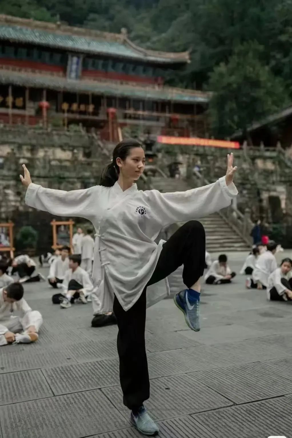 Beyond the competition venues, Tai Chi has become a widespread phenomenon. In the streets and alleys at the foot of Wudang Mountain, you can often see elegantly dressed individuals in Taoist robes, students wielding the Eight Immortals' staffs, and elderly practitioners carrying Tai Chi swords.