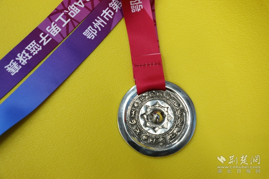 43面古銅鏡獎(jiǎng)牌光可鑒人,全部由鄂州古銅鏡復(fù)原復(fù)制第二代傳人仙有生傾力打造。