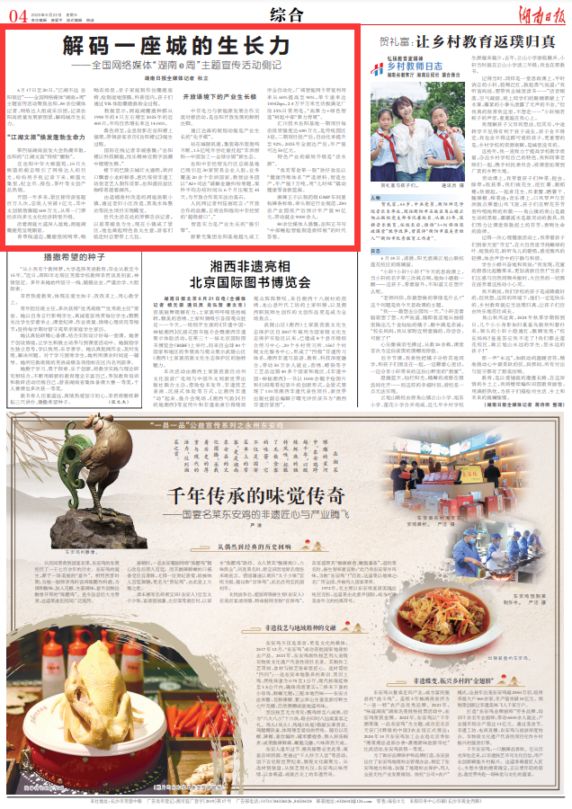 6月17日至20日,“江湖不遠(yuǎn) 岳陽很近”——全國網(wǎng)絡(luò)媒體“湖南e周”主題宣傳活動(dòng)聚焦岳陽,80余位媒體記者、網(wǎng)絡(luò)達(dá)人組成采訪團(tuán),記錄岳陽高質(zhì)量發(fā)展新圖景,解碼城市生長力。