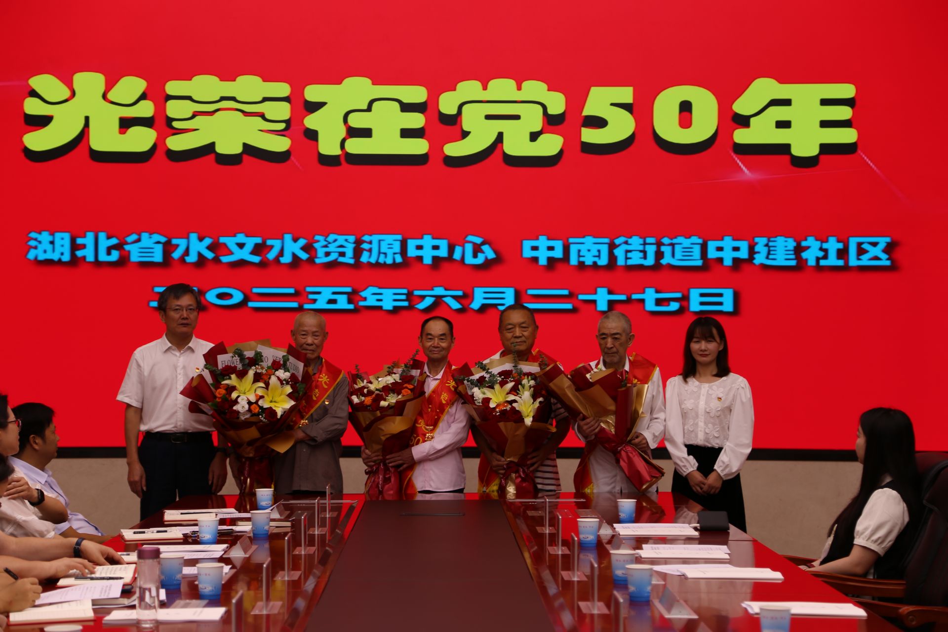 圖:湖北水文中心向4名老黨員頒發(fā)“光榮在黨50年”紀(jì)念章