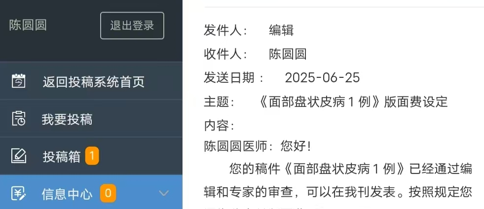 荊楚網(wǎng)(湖北日報網(wǎng))訊(通訊員 葉文正)近日,孝感市中心醫(yī)院皮膚科在罕見皮膚病診療領(lǐng)域取得重大突破。由該科醫(yī)師陳圓圓作為第一作者、醫(yī)師葉文正作為通訊作者撰寫的臨床病例報告《面部盤狀皮病1例》,被國內(nèi)皮膚科權(quán)威核心期刊《中國皮膚性病學(xué)雜志》接收,即將正式刊發(fā)。