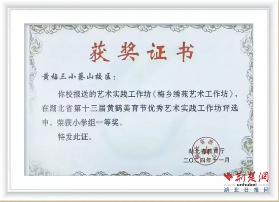 “讓孩子們從小學(xué)習(xí)挑花技藝,不能讓傳統(tǒng)技藝失傳,同時通過挑花活動培養(yǎng)孩子們靜下心來專注做事的良好品質(zhì)?!蓖趺粽f。2024年秋,學(xué)?!懊粪l(xiāng)繡苑”挑花工作坊帶著師生挑繡的作品參加湖北省第十三屆黃鶴美育節(jié),榮獲藝術(shù)實踐工作坊一等獎。