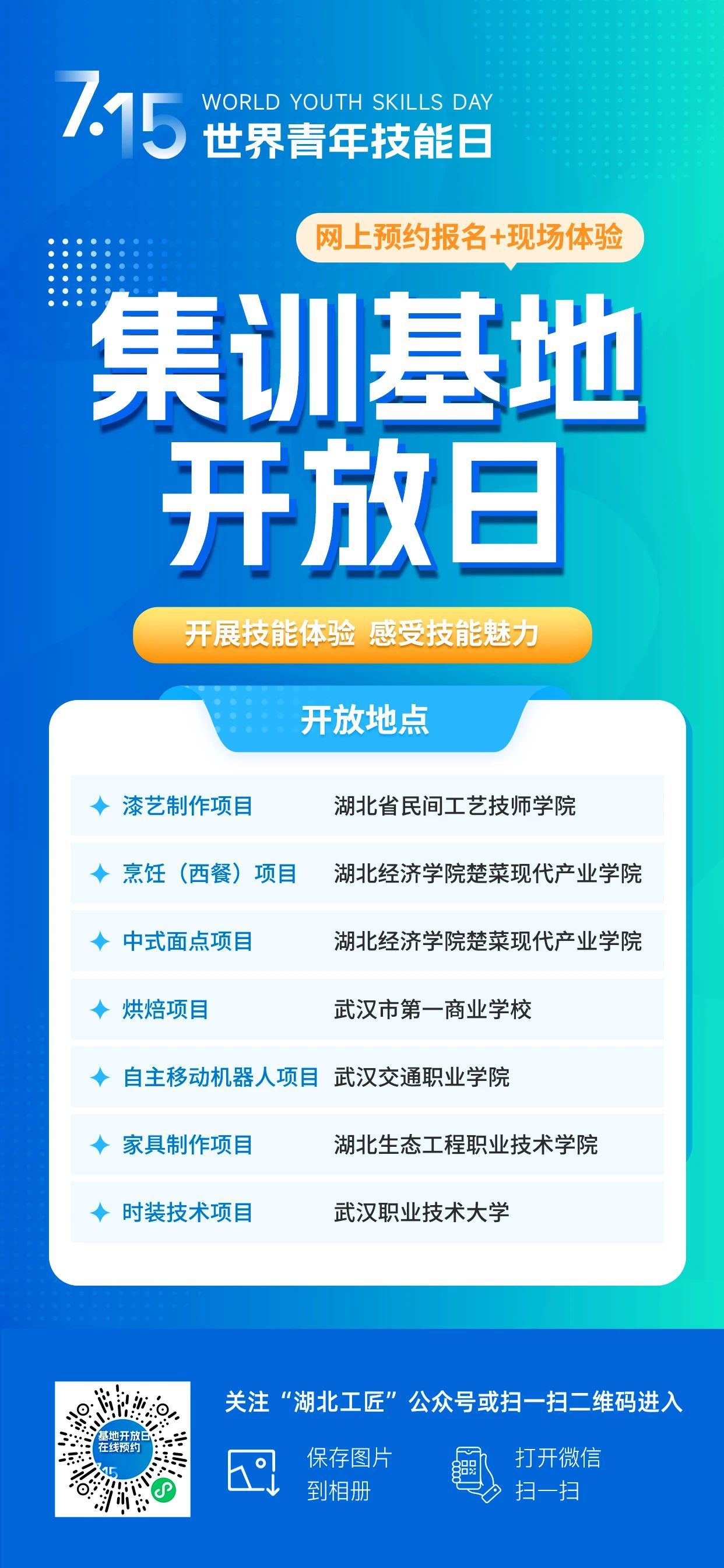 青年朋友們,技能改變命運,奮斗成就夢想!無論你擅長機器人編程,還是能把面點做成藝術品,只要你敢秀,湖北就給你舞臺?,F(xiàn)在就掃碼預約、答題、拍視頻,讓我們一起用技能照亮前程!