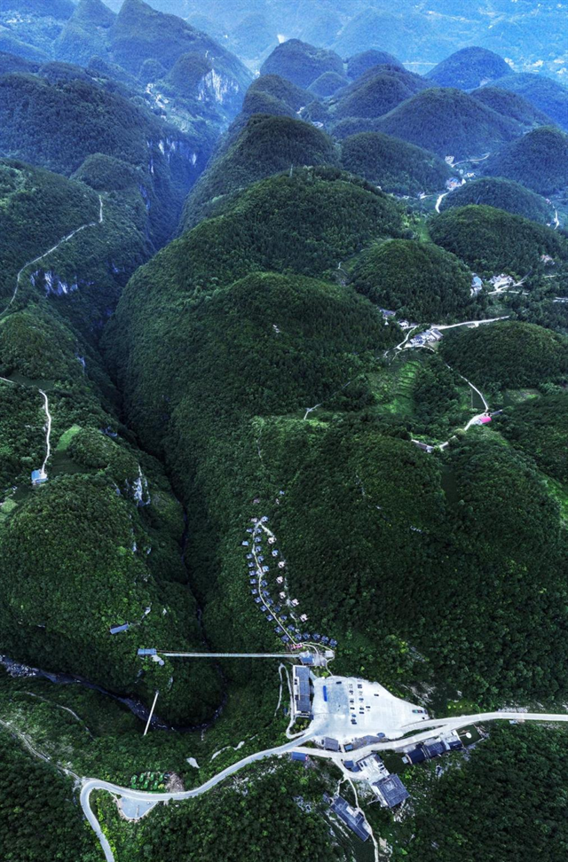 地心崖舍酒店宛如珠鏈點(diǎn)綴山間 供圖 地心谷景區(qū)