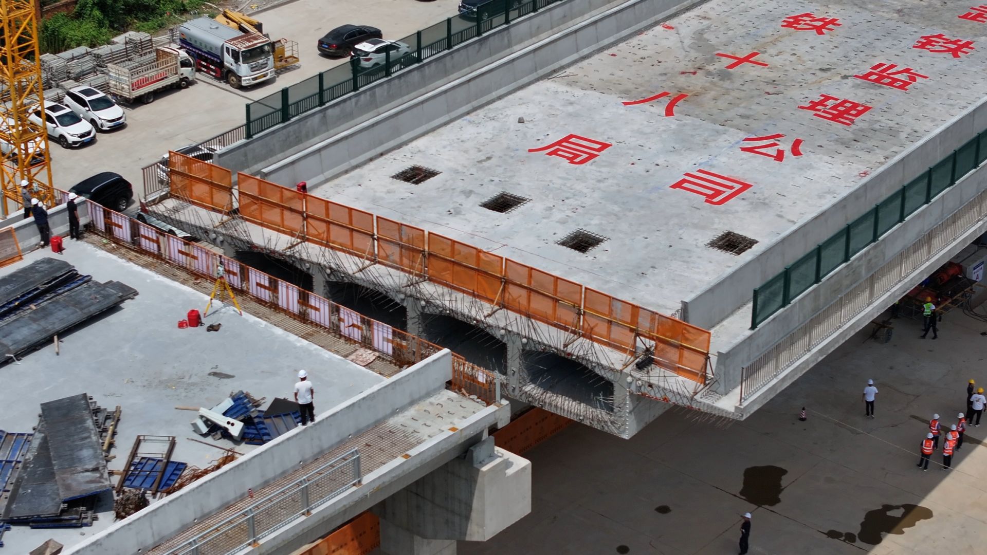 荊楚網(wǎng)(湖北日報網(wǎng))訊(通訊員陳園、康洪洲、陳澤潤)7月29日中午,湖北省孝昌縣首座跨鐵路立交橋——孝昌華陽大道上跨京廣鐵路立交橋成功轉(zhuǎn)體。該轉(zhuǎn)體橋全長100米,橋面寬度24.76米,轉(zhuǎn)體長度94米,轉(zhuǎn)體重量1萬噸,歷時90分鐘,順時針旋轉(zhuǎn)88度后,實現(xiàn)零誤差精準對接。