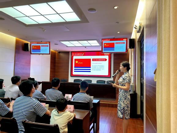 活動(dòng)伊始,辛亥革命博物院的老師為孩子們介紹了中國人民解放軍的光輝發(fā)展歷程、各種軍旗的設(shè)計(jì)含義及八一建軍節(jié)的由來和意義。隨后特邀武昌職業(yè)學(xué)院李亦偉教授、王浩然老師和朱世康老師進(jìn)行現(xiàn)場(chǎng)教學(xué)。李教授為孩子們講授了《捍衛(wèi)藍(lán)色疆域 爭(zhēng)做強(qiáng)國少年》的專題課程,王老師和朱老師則帶來了軍體特色科目——旗語,孩子們認(rèn)真學(xué)習(xí),全情投入?,F(xiàn)場(chǎng)還舉行了氣氛熱烈的國防知識(shí)競(jìng)答,大家專心聆聽,積極搶答問題,現(xiàn)場(chǎng)氣氛熱烈而有序,表現(xiàn)優(yōu)異的小朋友獲評(píng)為“答題王”,并獲得了精美的獎(jiǎng)品。在互動(dòng)體驗(yàn)環(huán)節(jié),武昌職業(yè)學(xué)院楊洋隊(duì)長為孩子們示范標(biāo)準(zhǔn)軍姿,并對(duì)孩子們進(jìn)行現(xiàn)場(chǎng)指導(dǎo)。隨后,孩子們以畫筆為媒,書寫下對(duì)人民子弟兵最誠摯的敬意與祝福。湖北木蘭花社會(huì)服務(wù)中心副理事長熊英聯(lián)手漢繡指導(dǎo)老師田宸輝向辛亥革命博物院捐贈(zèng)了漢繡黨旗和書法作品,以筆墨禮贊奮斗精神。