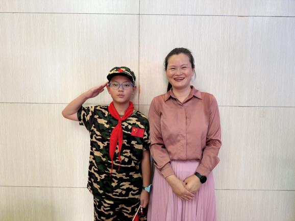 黃宜萌媽媽:“很榮幸能陪孩子參加軍事主題活動(dòng),看到孩子們認(rèn)真學(xué)軍姿、唱軍歌……特別欣慰!愛國教育從小抓起,我們每一代人都要銘記歷史,傳承紅色精神!”