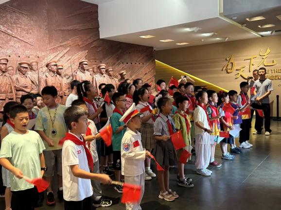 活動(dòng)尾聲,辛亥革命博物院小小講解員代表深情朗誦《少年中國說》。全體學(xué)生齊聲高唱軍歌《強(qiáng)軍戰(zhàn)歌》,“聽吧,新征程號(hào)角吹響,強(qiáng)軍目標(biāo)召喚在前方……”,雄壯的旋律在序廳久久回蕩,將現(xiàn)場(chǎng)氣氛推向高潮。