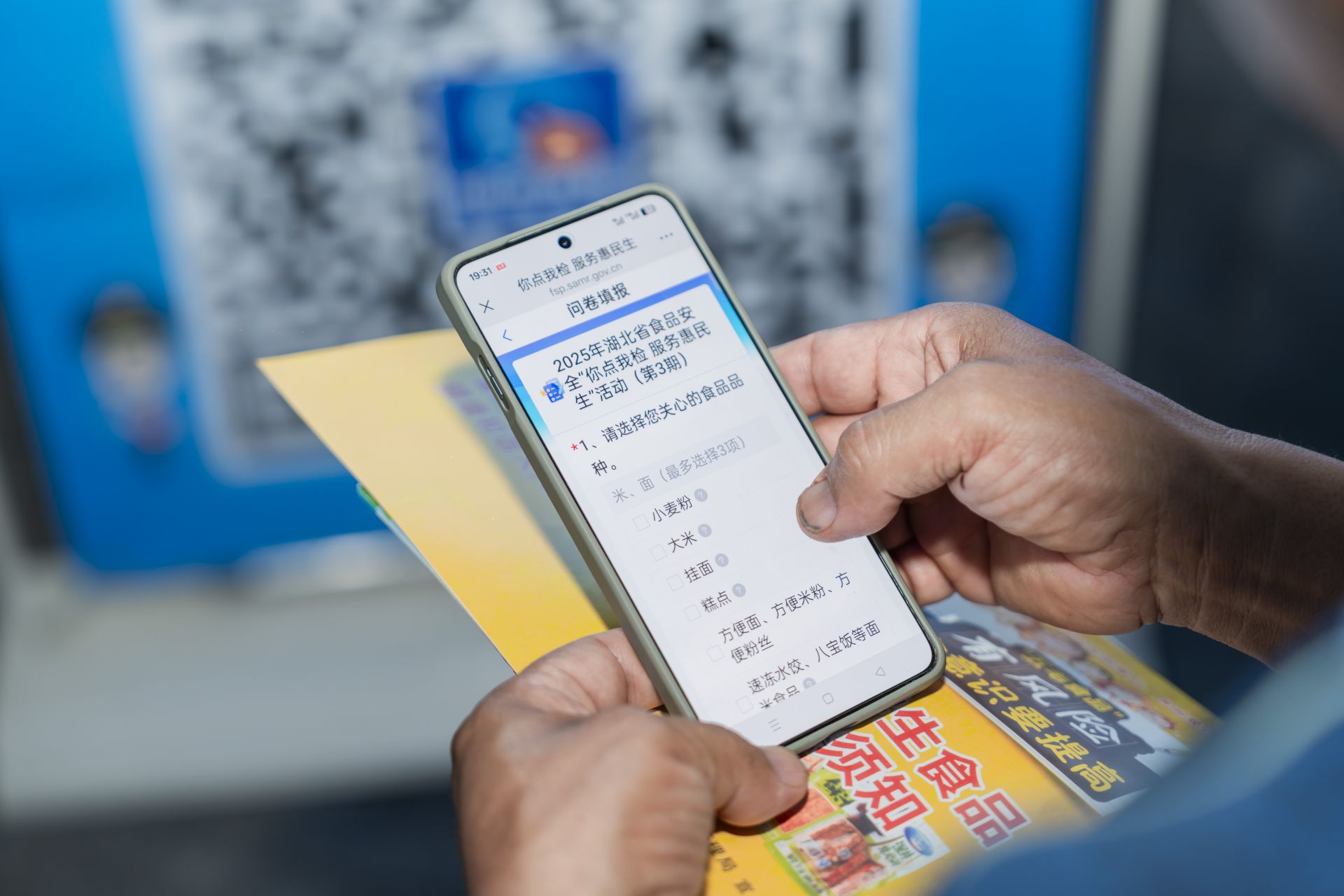“大叔,您用手機掃一掃這個二維碼,就可以參與點選?!痹诨顒蝇F(xiàn)場,市場監(jiān)管工作人員向來往群眾發(fā)放調(diào)查問卷及食品安全科普資料,并邀請消費者通過掃碼進入“你點我檢 服務(wù)惠民生”民意征集系統(tǒng),勾選自己關(guān)心的食品種類、經(jīng)營場所、檢測項目。“夏天天氣熱,都愛點外賣,希望你們多檢測一下”。在問卷征集過程中,不少消費者提出比較關(guān)注外賣食品安全。