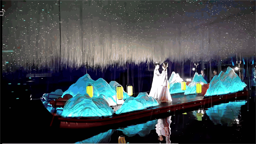“在船上看戲,兩岸燈光隨劇情變幻,仿佛穿越到千年孝文化傳說(shuō)中?!蔽錆h游客李女士在欣賞完《鵲橋》《織絹》等經(jīng)典橋段后連連贊嘆。