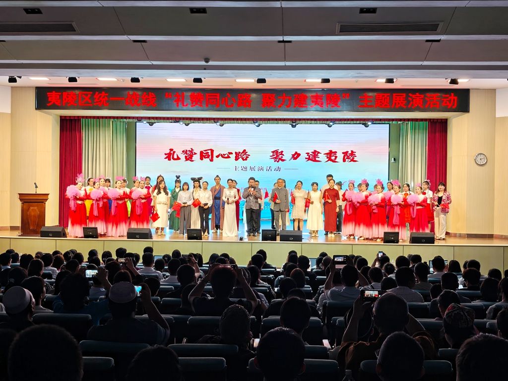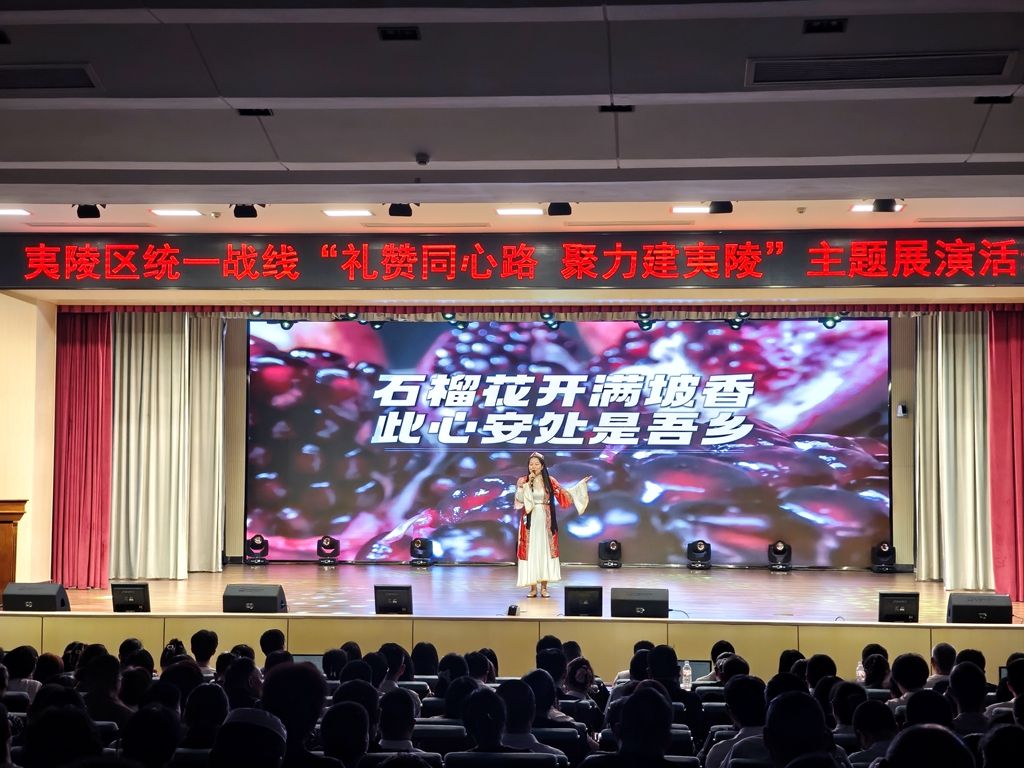 展演活動分初心啟征程、同心譜新篇、同行筑華章等三個篇章?;顒釉诰实奈璧副硌荨肚啻猴w揚》中拉開帷幕。區(qū)民革黨員演講《我驕傲,我是一名民革人》,字字彰顯“風雨同舟”的初心,詩朗誦《難忘》、情景劇《激流夜航》等節(jié)目,帶大家回望抗戰(zhàn)時期的烽火歲月;政法系統(tǒng)帶來的詩朗誦《憲法,我向您宣誓》、農(nóng)工黨夷陵支部表演情景劇《走在春風里》等節(jié)目,生動展示了新時代統(tǒng)戰(zhàn)成員圍繞中心、服務大局,在各自領域建功立業(yè)的實踐風采;演講《僑心報國,花木傳情》《從建設者到見證者——三代三峽人的時代答卷》,情景劇《遇見瀑布 情歸夷陵》等節(jié)目呈現(xiàn)了夷陵統(tǒng)一戰(zhàn)線成員凝心聚力、攜手共創(chuàng)夷陵美好未來的堅定決心與生動實踐。