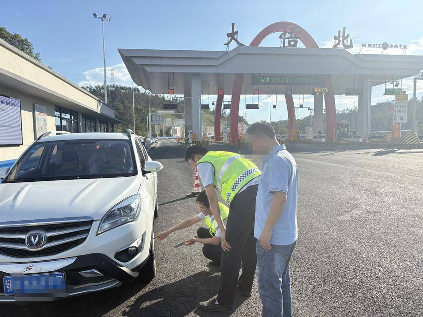 當(dāng)日16:53分,王先生駕駛一輛鄂A牌照的白色小轎車因發(fā)動機突發(fā)故障,無法正常加速,只能低速行駛至大悟北收費廣場后停下。車主焦急地在車旁查看情況,不知所措。