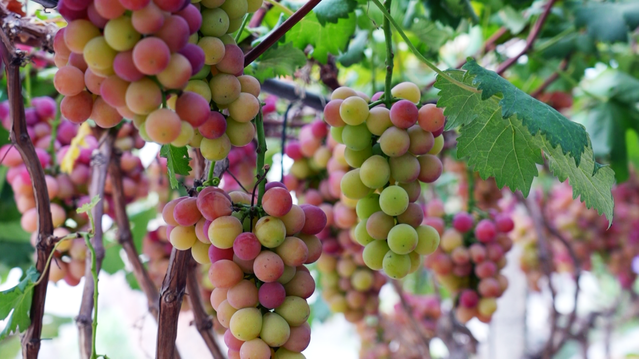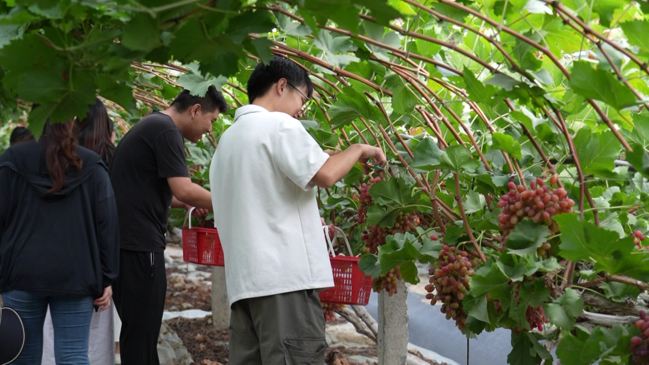 果園旁的交易中心里,嘗鮮、采購的游客絡(luò)繹不絕,新鮮葡萄成了這個初秋最搶手的“甜禮”。