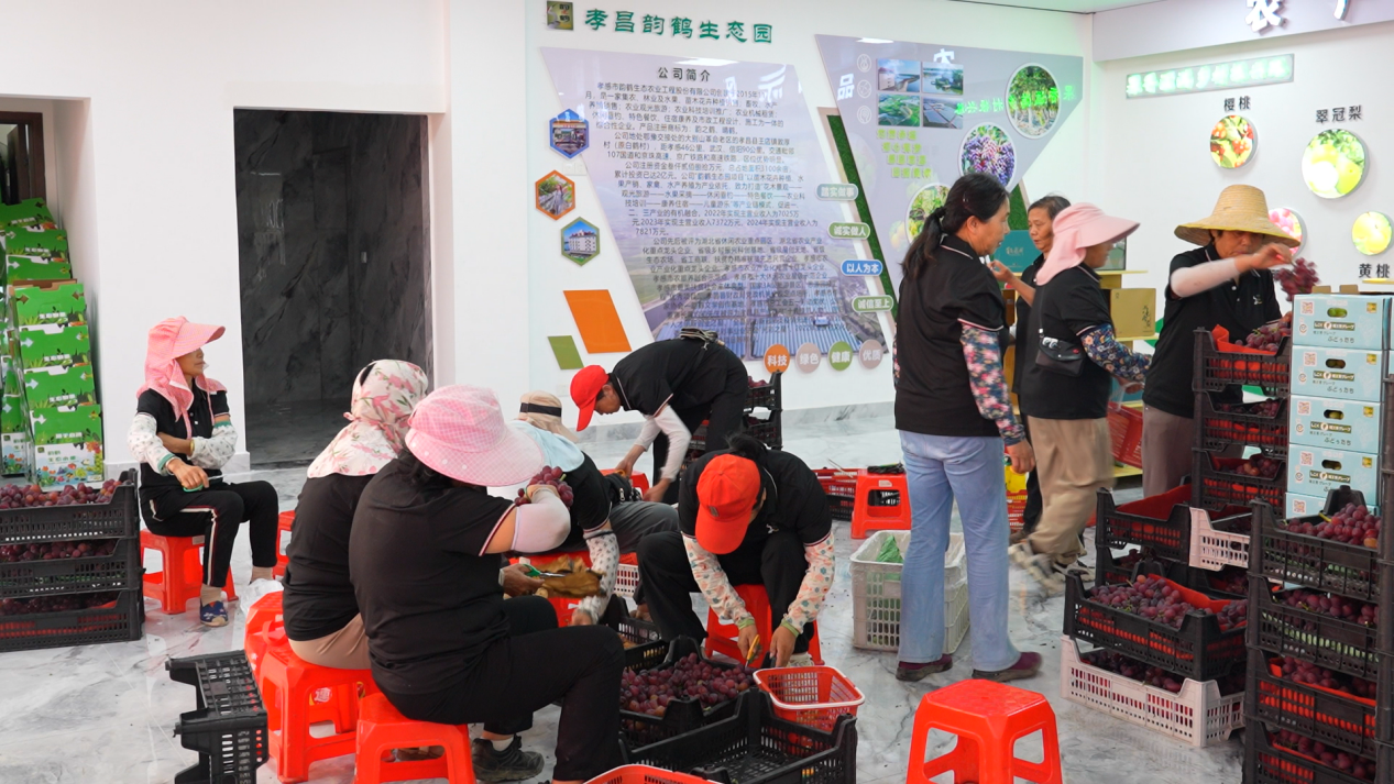 作為華中地區(qū)單體規(guī)模最大的高端葡萄種植園,韻鶴生態(tài)園占地3100畝,如今已成功入選國家3A級景區(qū)。除了葡萄,園區(qū)全年還能采摘草莓、櫻桃、桑葚等水果,配套的餐飲、住宿、游樂園設(shè)施一應(yīng)俱全,每年接待游客超30萬人次。