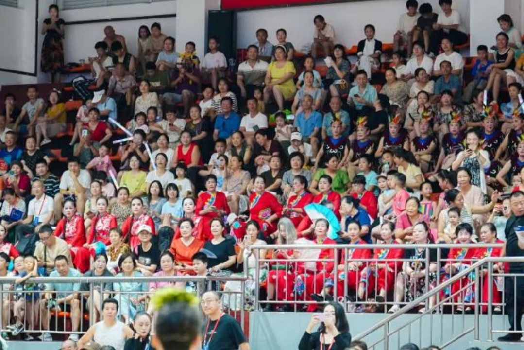 比賽現(xiàn)場,伴隨著《我和我的祖國》《輝煌中國夢》等一首首激昂動聽的旋律,各參賽隊伍輪番登場。隊員們精神飽滿、動作整齊,將民族風(fēng)情、時代氣息與健身元素巧妙融合,用舞步詮釋健康與快樂。看臺上千余名觀眾掌聲不斷,不少群眾舉起手機(jī)記錄精彩瞬間,現(xiàn)場成為一片歡樂的海洋。