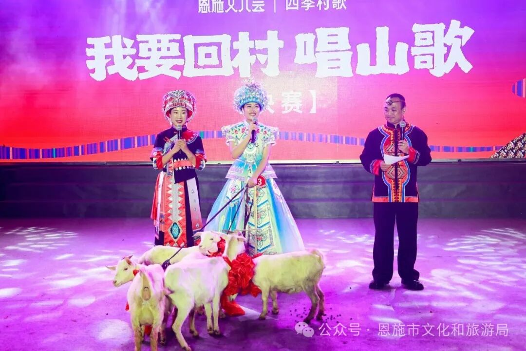 經(jīng)過(guò)數(shù)輪激烈緊張的比拼,來(lái)自紅土鄉(xiāng)的本土歌手黃萍憑借出色的表現(xiàn)獲得2025恩施女兒會(huì)“我要回村唱山歌”冠軍,成為名副其實(shí)的“歌王”,贏得山羊5只;芭蕉侗族鄉(xiāng)梁偲、硒都大舞臺(tái)小春兩名選手獲得亞軍,分別贏得山羊2只。新塘鄉(xiāng)火姐姐、沙地鄉(xiāng)沙地州、硒都大舞臺(tái)小花三名選手獲得季軍,分別贏得山羊1只。