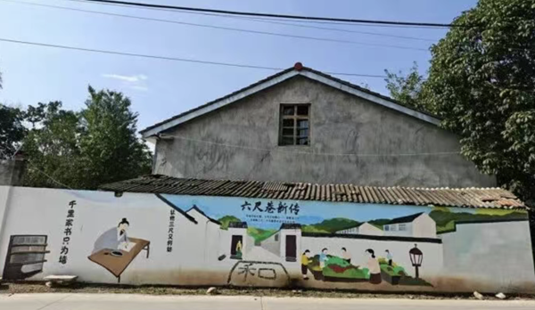 關(guān)廟集村委干部介紹,黃、龍兩家曾因耕地界限起糾紛,雖經(jīng)村委會多次調(diào)解達成協(xié)議,約定收割后正式打樁劃線,但兩家仍互不往來。轉(zhuǎn)機出現(xiàn)在8月中旬,湖北文理學(xué)院學(xué)生志愿者來村畫墻繪,村委會邀請兩家現(xiàn)場觀摩?!扒Ю锛視粸閴?,讓他三尺又何妨?!避S然于墻的六尺巷新傳墻繪,讓兩家村民內(nèi)心平靜了很多。