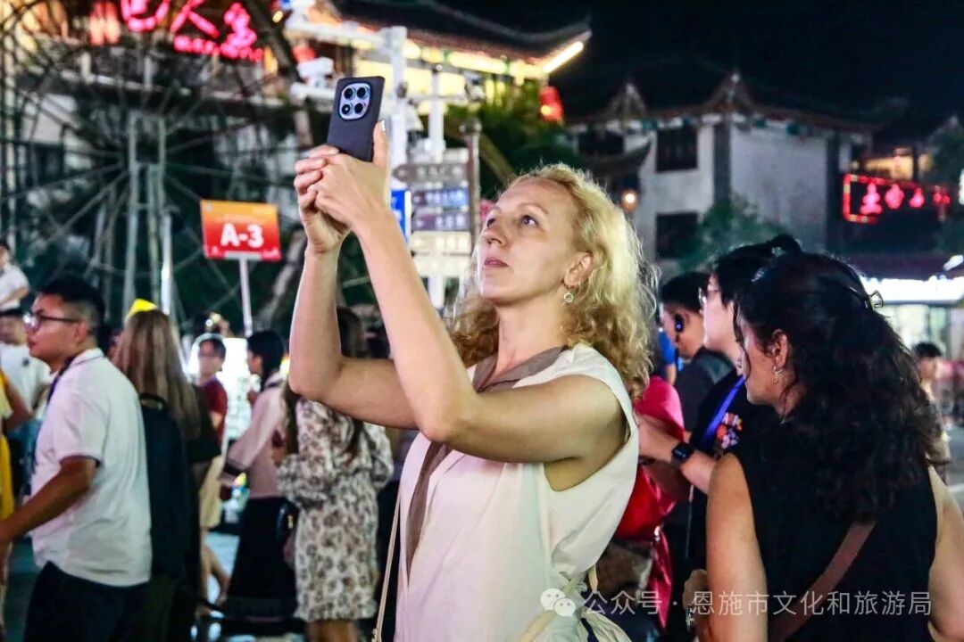 來到恩施市的首站,旅行商團(tuán)隊走進(jìn)恩施女兒城。通過古色古香的吊腳樓群、原汁原味的民俗表演和互動體驗,讓外賓們直呼“穿越時空”。圍著篝火跳完擺手舞,來自俄羅斯的代表興奮地表示:“傳統(tǒng)舞蹈的韻律和熱情極具感染力,這種活態(tài)文化傳承比博物館展示更令人難忘!”