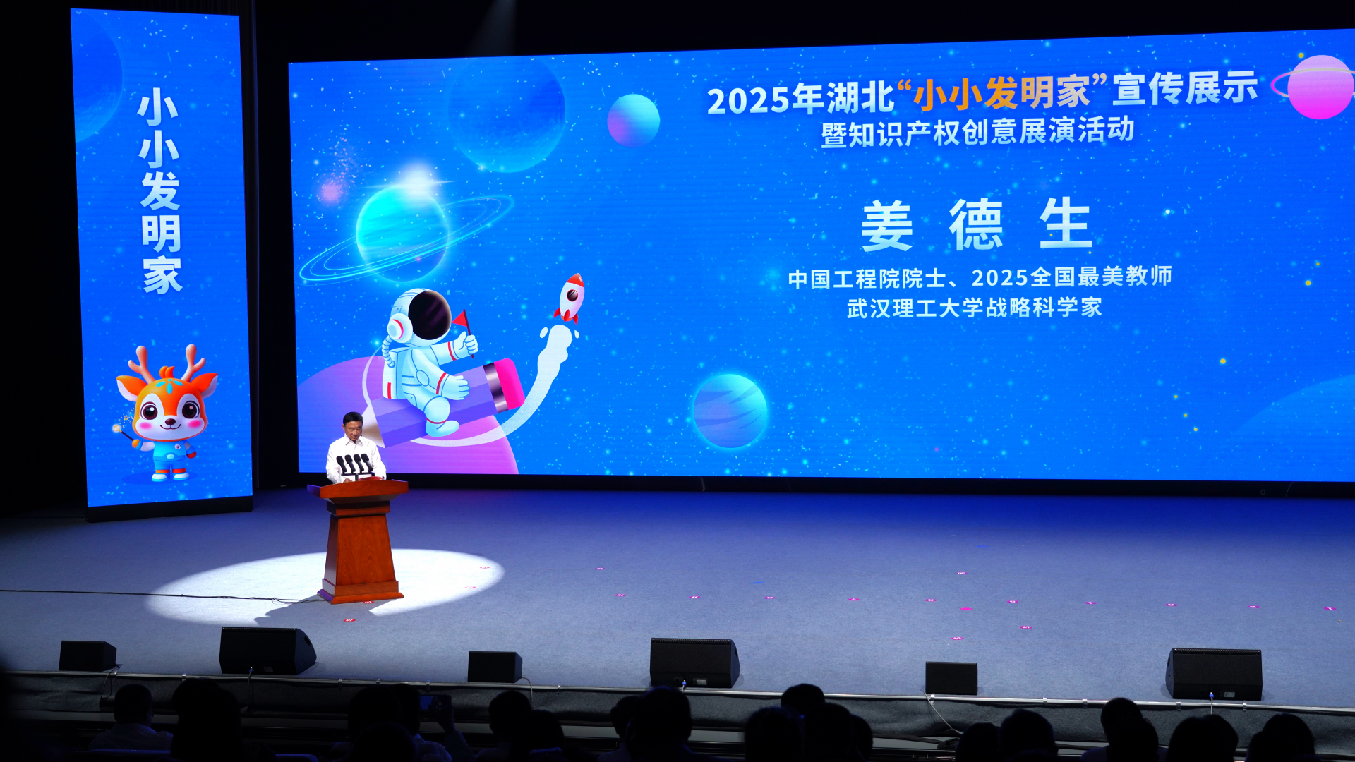 現(xiàn)場揭曉了20名(組)小小發(fā)明家“創(chuàng)意之星”和30名(組)“未來之星”名單。姜德生院士與吳駿局長為中學(xué)組“創(chuàng)意之星”頒發(fā)專屬勛章,中國發(fā)明協(xié)會(huì)黨委書記、常務(wù)副理事長、秘書長余華榮為小學(xué)組“創(chuàng)意之星”頒發(fā)勛章。此外,活動(dòng)組委會(huì)還宣布成立“導(dǎo)師幫幫團(tuán)”,來自高校、湖北重點(diǎn)實(shí)驗(yàn)室、省知識(shí)產(chǎn)權(quán)保護(hù)中心及5A級(jí)知識(shí)產(chǎn)權(quán)代理機(jī)構(gòu)的20名導(dǎo)師將與“創(chuàng)意之星”結(jié)對(duì),提供技術(shù)優(yōu)化、專利申報(bào)指導(dǎo)等長期支持,推動(dòng)青少年創(chuàng)意走向?qū)嵺`。