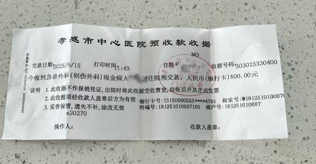 當(dāng)天,一位70多歲的老人因外傷導(dǎo)致肋骨骨折,被緊急送往孝感市中心醫(yī)院急診外科。值班醫(yī)生檢查發(fā)現(xiàn),老人多處肋骨骨折,需立即住院治療,否則可能引發(fā)肺部感染、呼吸功能障礙等嚴(yán)重并發(fā)癥。然而,老人獨(dú)自前來,身無分文,也無法聯(lián)系到家人,住院繳費(fèi)成了難題。