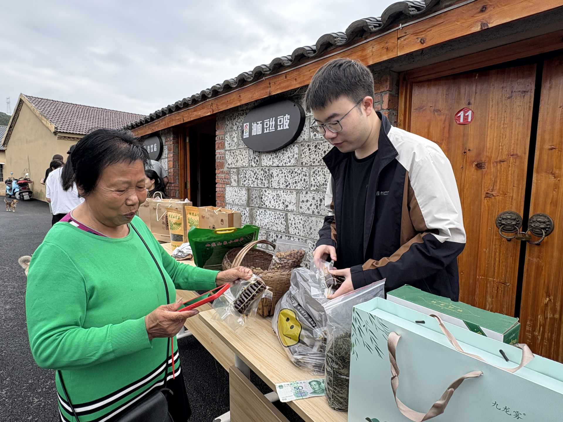 展銷會(huì)上,各村展臺(tái)前人頭攢動(dòng),特色農(nóng)產(chǎn)品琳瑯滿目——有香氣四溢的陽(yáng)平豆干、香甜可口的葡萄、香味撲鼻的花生,還有新寨村特色稻蝦米、陳灣村九龍山綠茶和柳林村本地土雞蛋等?,F(xiàn)場(chǎng)還設(shè)置了直播帶貨區(qū),主播熱情介紹每一款農(nóng)特產(chǎn)品的特色,讓更多網(wǎng)友隔著屏幕也能感受到來(lái)自陽(yáng)平鎮(zhèn)的豐收喜悅。