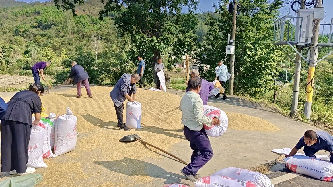 “家里勞動力少,正愁曬谷!多虧干部們給場地、幫干活,解決了大難題!”龍?zhí)洞宕迕耦仢啥Y一邊裝糧一邊感慨。