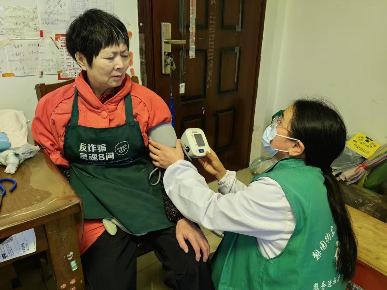 重陽節(jié)當(dāng)日下午,服務(wù)團(tuán)隊(duì)走進(jìn)東沙花園社區(qū)低保戶邱婆婆家中。邱婆婆因?yàn)樵缒暌馔廛嚨?,?dǎo)致時(shí)長精神性疼痛直不起腰,街道特別組建"3+1"幫扶小組:家庭醫(yī)生每月上門體檢、民政專員對(duì)接輔具租賃、助老員傳授護(hù)理技巧。