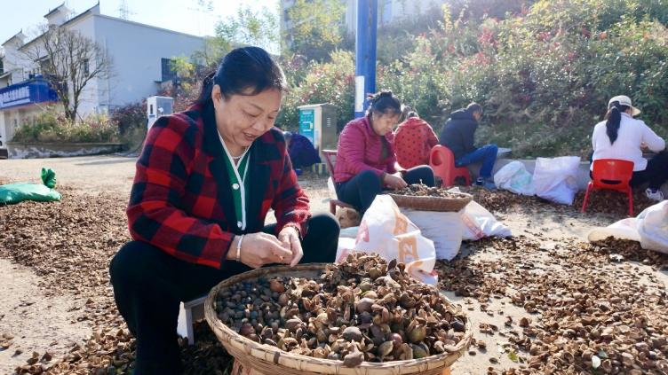 “今年果子結得特別好!”正在場地幫忙篩選油茶籽的三畈村村民談菊華開心地說,“我們帶孫子、做家務,在家門口就能干活掙錢,一天能掙100多塊錢,心里踏實!”這份“家門口”的就業(yè)機會,讓村民們在照顧家庭的同時,鼓了錢袋子,暖了心窩子。