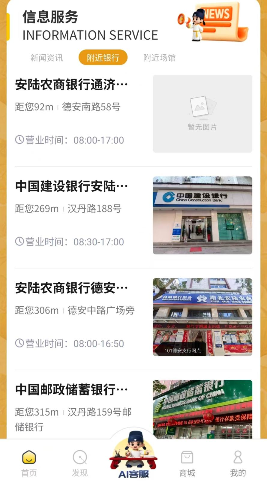 作為安陸市重點(diǎn)打造的智慧文旅服務(wù)載體,平臺(tái)依托現(xiàn)代信息技術(shù),將全市各類支付服務(wù)網(wǎng)點(diǎn)信息全面整合,形成“支付網(wǎng)點(diǎn)一張圖”數(shù)字化服務(wù)矩陣。游客只需打開(kāi)“一碼游安陸”微信小程序,在首頁(yè)的信息服務(wù)板塊即可實(shí)時(shí)查看周邊銀行網(wǎng)點(diǎn)、助農(nóng)取款點(diǎn)等位置分布、服務(wù)范圍及運(yùn)營(yíng)狀態(tài),通過(guò)一鍵導(dǎo)航功能快速抵達(dá),輕松滿足現(xiàn)金取款、掃碼支付、業(yè)務(wù)辦理等各類需求,徹底告別“找網(wǎng)點(diǎn)難、支付不便”的出行困擾。