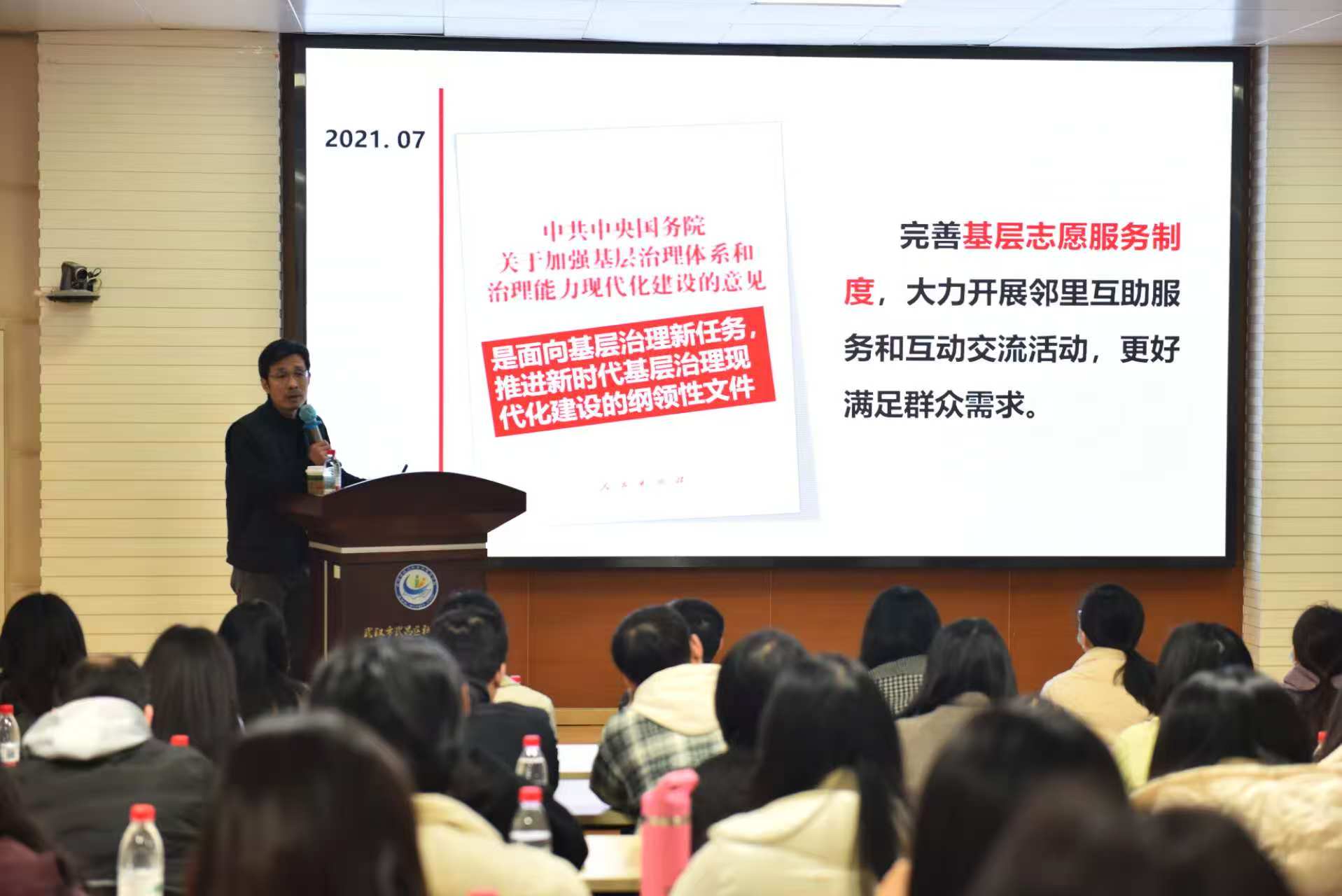 理論授課環(huán)節(jié),深圳大學政府管理學院袁方成教授以《志愿服務助力基層治理現(xiàn)代化》為題展開授課。他系統(tǒng)闡釋了新時代志愿服務體系的目標任務與發(fā)展趨勢,深入解讀了志愿服務工作發(fā)展歷程、職能要求、創(chuàng)新案例,為學員們打開了最新的宏觀視角,提供了堅實的理論支撐。