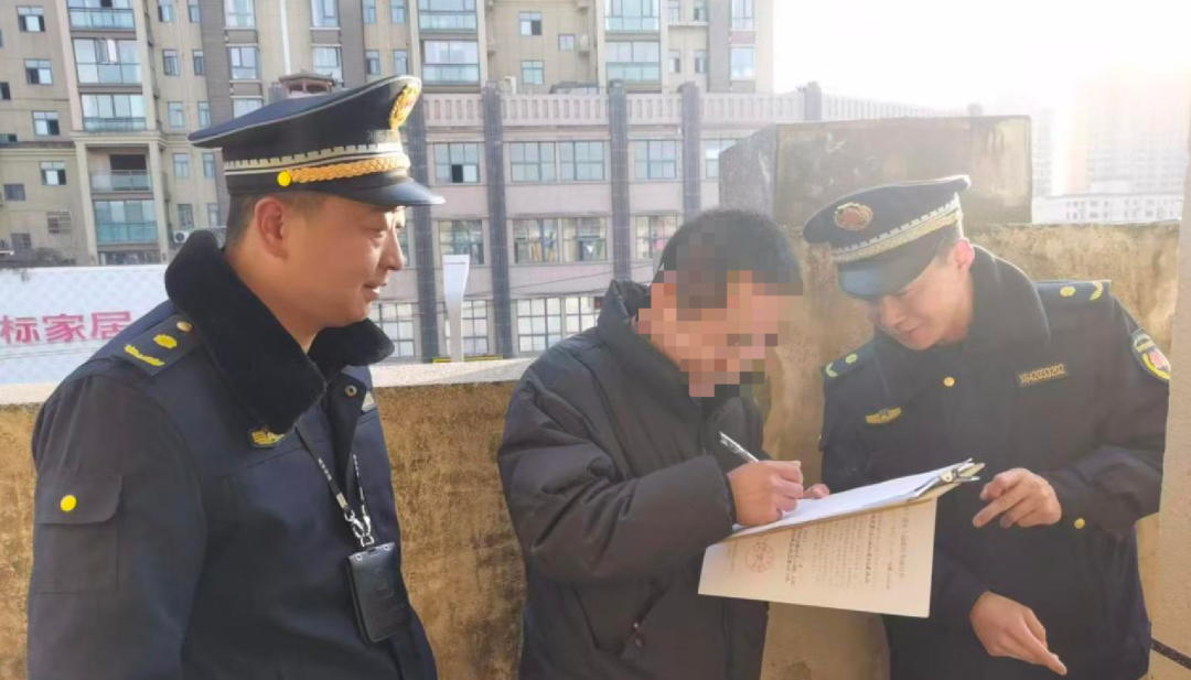 執(zhí)法人員現(xiàn)場拆除違規(guī)占用樓頂公共區(qū)域搭建陽光房
