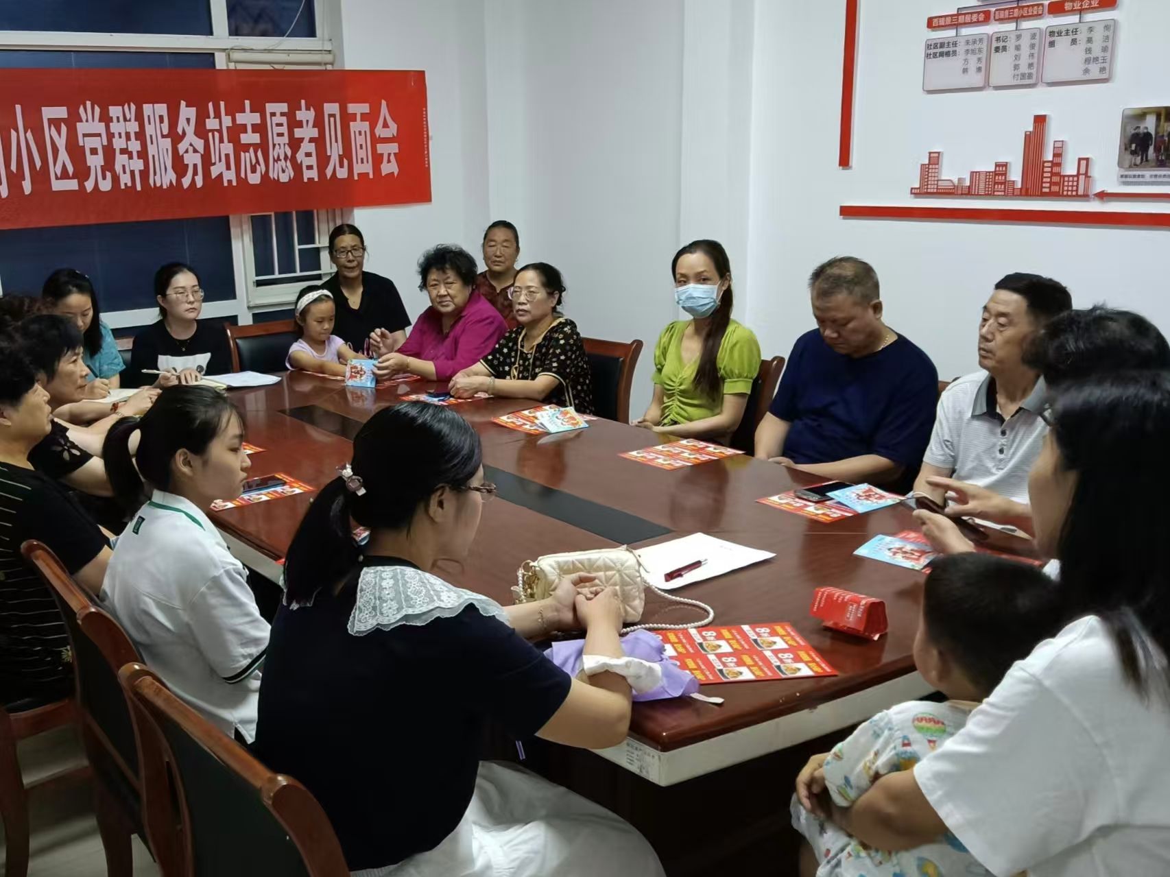 百瑞景社區(qū)與志愿者商討黨群服務(wù)站管理事宜并發(fā)放商戶折扣券
