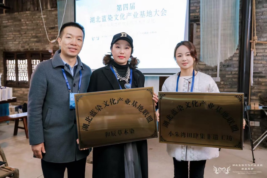 此外,大會(huì)還為黃石和辰草木染、小朱灣田肆集非遺工坊兩家新晉基地授牌,并為陳小蓮傳承人工作室設(shè)立的研究生工作站揭牌。孫傳明主席在致辭中表示,當(dāng)前,湖北省委、省政府正大力加強(qiáng)荊楚文化資源保護(hù)和推動(dòng)文化創(chuàng)新發(fā)展,以系統(tǒng)性舉措整體提升支點(diǎn)的文化影響力。產(chǎn)業(yè)聯(lián)盟也將持續(xù)搭建產(chǎn)學(xué)研協(xié)同創(chuàng)新平臺(tái),推動(dòng)植物染技藝與現(xiàn)代科技、設(shè)計(jì)、市場(chǎng)深度融合,并積極履行社會(huì)責(zé)任,為文化強(qiáng)省建設(shè)和人民美好生活貢獻(xiàn)聯(lián)盟的智慧與力量。會(huì)議由華中師范大學(xué)研究員、湖北藍(lán)染文化產(chǎn)業(yè)基地聯(lián)盟副主席石煒主持。