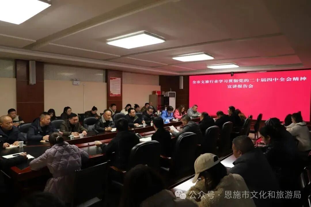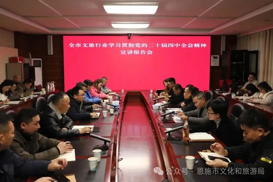 黨的二十屆四中全會是在向第二個百年奮斗目標進軍的關鍵時期召開的一次十分重要的大會,會上系統(tǒng)謀劃了“十五五”時期經濟社會發(fā)展宏偉藍圖,對文化建設和旅游發(fā)展提出了一系列新部署、新要求,為文旅事業(yè)發(fā)展指明了前進方向、提供了根本遵循。要將學習貫徹全會精神作為當前和今后一個時期的重要政治任務,切實把思想和行動統(tǒng)一到黨中央決策部署上來,奮力推動恩施市文化旅游業(yè)高質量發(fā)展行穩(wěn)致遠。