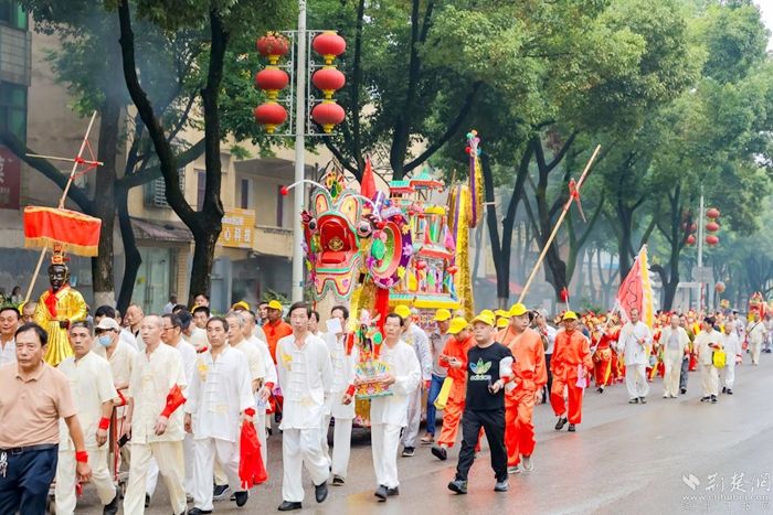 今年巡游的旱龍舟長6米長、有4.36米高,主要用竹篾扎制,由龍頭、中倉、龍尾等組成,全舟分上中下三層,以“屈原”和“龍”為中心,72神像環(huán)繞。舟身下層有24名“水手”,象征著24個節(jié)氣;中層的12“花神”,代表一年12個月。每一具神像承載著澤林民眾的生活智慧以及祈福求祥的善良愿望。