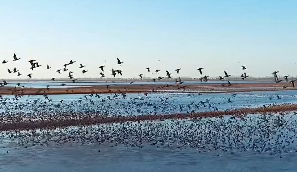 5000多公頃水域與灘涂構(gòu)成了一個良性循環(huán)的生態(tài)系統(tǒng),為各種水生生物提供了良好生存環(huán)境:淺灘上生長著豐富植物和食草昆蟲,淺水中生長著茂盛的水草、小魚小蝦和多種藻類植物,蘆葦叢中也藏匿著種類繁多的越冬昆蟲……這種良好的生態(tài)系統(tǒng),為候鳥們提供了充足的食物來源和宜居環(huán)境。