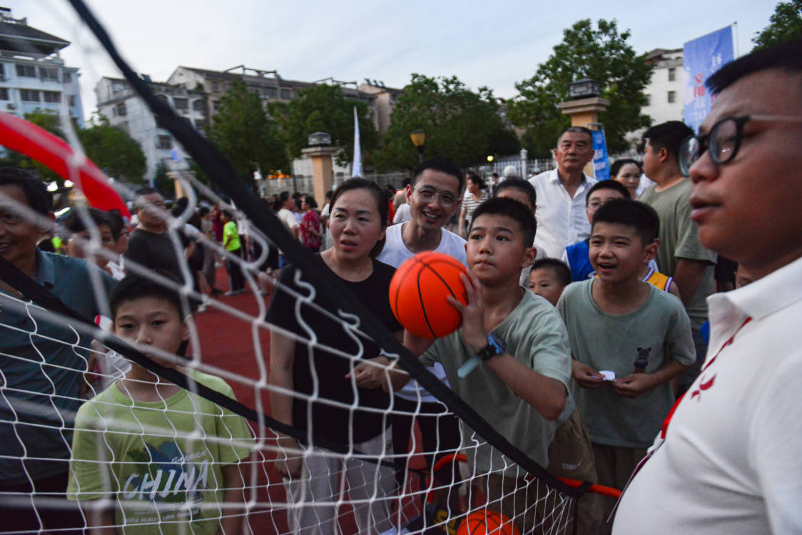 一分鐘跳繩活動現場“繩”采飛揚,參賽者五人一組,各施技藝,場面歡樂又熱鬧;踢毽子區(qū),選手們閃轉騰挪,五彩繽紛的毽子上下翻飛,畫出一條條優(yōu)美的弧線;一分鐘投籃比賽,選手們對著籃球機左右開弓,瘋狂進球,屏幕上的分數跳跳跳,圍觀的居民直呼“高手在民間” 。