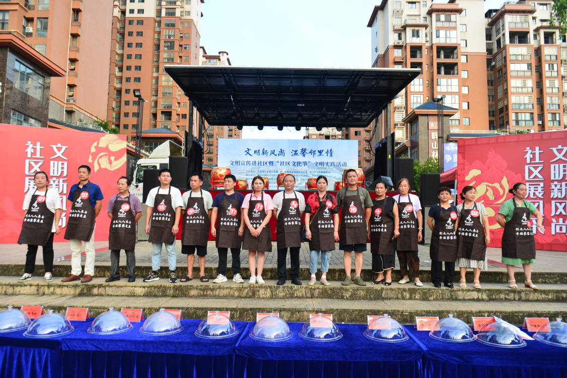 游人如織,笑靨如花。7月5日傍晚時分,咸寧市“文明新風尚 溫馨鄰里情”文明宣傳進社區(qū)暨“社區(qū)文化節(jié)”文明實踐活動在永安街道文筆路社區(qū)青龍山公園廣場正式啟動,社區(qū)居民 掌勺烹“大餐”,豐富多彩的活動讓現場的觀眾忍不住贊嘆,“這樣的活動對味兒!”