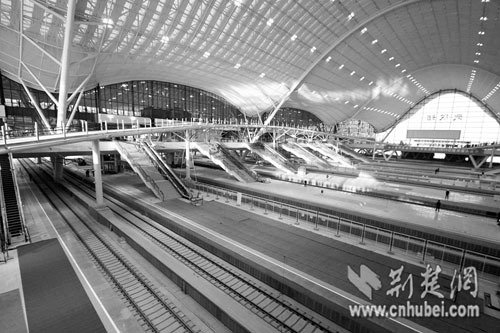 荊楚網(wǎng)消息 (楚天金報記者譚新杰 通訊員吳志華) 日前,武廣客專北端的起點站——武漢火車站已正式“掛牌”。自從2006年9月開工以來,這座飄逸的“鋼鐵巨鵬”,便淹沒在鏗鏘的建設(shè)聲中,一般人也很難進(jìn)入站內(nèi)一看究竟,只能遠(yuǎn)遠(yuǎn)地看著它的雙翼逐漸成形,雄風(fēng)漸展。這種結(jié)構(gòu)用鋼量超過鳥巢的偉大建筑,也被蒙上了一層神秘的面紗。