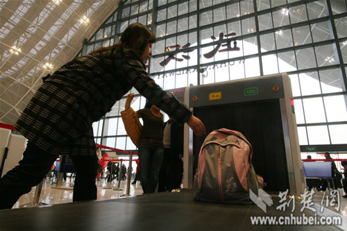 一位武漢站的建設(shè)者在站前廣場揮動旗幟,今天他們將坐上首列開往廣州的高鐵。