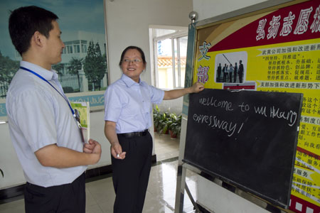 有了這次尷尬的經(jīng)歷,小曹回家的第一件事就是讀“a、b、c……”,有模有樣跟著女兒學(xué)寫簡(jiǎn)單的英語單詞,一遍不會(huì),再來二遍。為了練說“Wellcome to WUHUANG expressway!”
