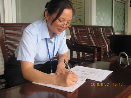 現(xiàn)在的曹春梅,除了能寫簡(jiǎn)單的英文,還能與老外進(jìn)行簡(jiǎn)單的對(duì)話,一個(gè)費(fèi)收員能有這樣的執(zhí)著,不能不讓人刮目相看。