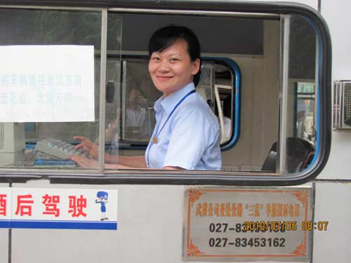 一方面,她發(fā)現(xiàn)大多數(shù)車輛滯留是因為問路,她為了準確快速回答司機,將武黃路沿線、距離、行駛方法熟記于心、在司機詢問情況時,準確簡潔地告訴司機,減少車輛滯留時間。