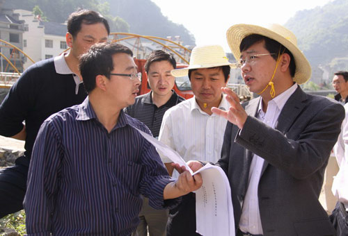 神農(nóng)架林區(qū)黨委政府召開(kāi)下谷鄉(xiāng)現(xiàn)場(chǎng)辦公會(huì)議。右一為周森峰。